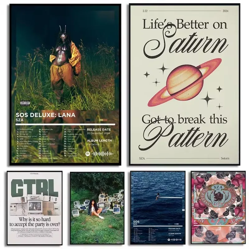 Hot Pop Singer SZA Classic Music Albums Tracklist CTRL/SOS Aesthetic Poster Canvas Painting Wall Art Pictures Home Decor Gift